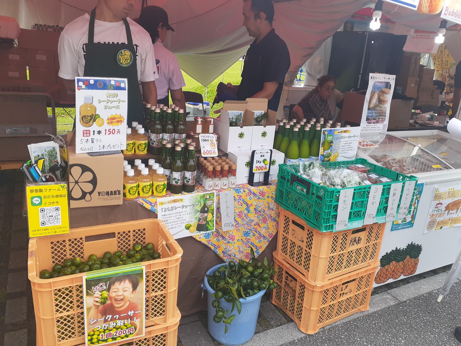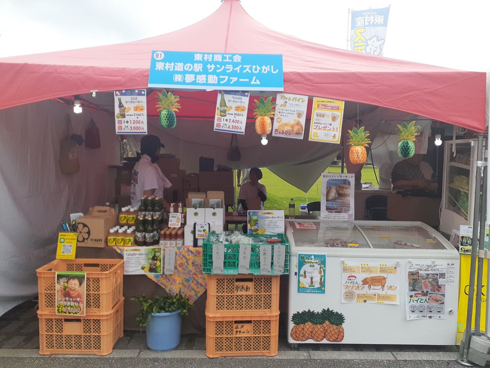シークヮーサーを使った商品や果実、パイナップル商品を中心に販売し、試飲コーナーでは沖縄県産シークヮーサー100%の「やんばるシークヮーサー」 が大好評!