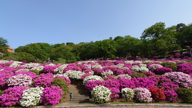 会場には約5万本のつつじが咲き誇り、色鮮やかな花々が訪れる人々を魅了します。